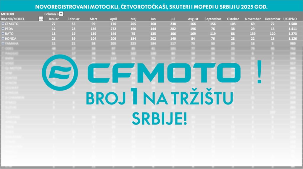 Rezultati prodaje motocikala u 2025. godini bili su dobri ne samo za sektor motociklizma, već i u segmentu skutera i ATV (UTV i SBS), a CFMOTO može da se pohvali da je najprodavaniji brend u „Powersport“ segmentu.