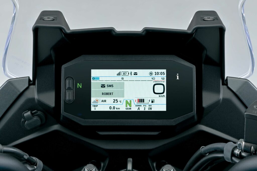 Na fotografijama deluje da je instrument tabla za nijansu bolje izvedena u poređenju sa instrument tablom na GSX-8S, GSX-8R i V-Strom 800. Informacije i raspored su slične, ali sam dizajn deluje lepše.