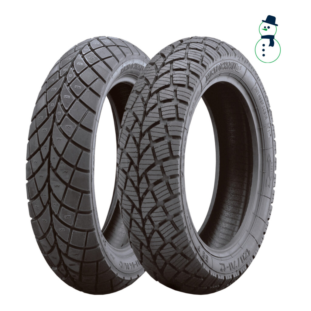 Proizvođači guma za skutere videli su svoju priliku da dodatno zarade i radili su na razvoju zimskih guma. Jednostavno su pratili šemu iz automobilske industrije i napravili su gume za zimu i celu sezonu.